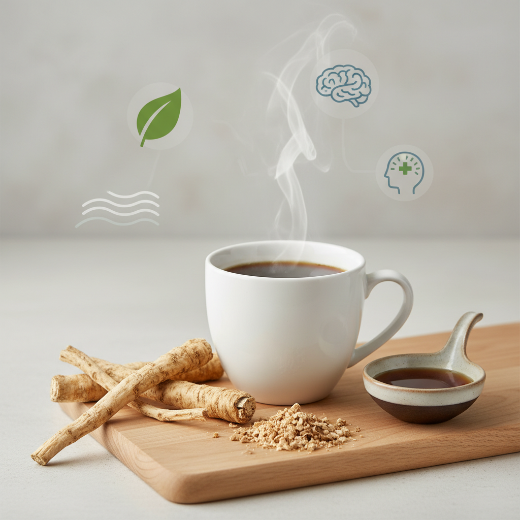 - Tinkamo kiekio parinkimas: Jei naudojate tirpius miltelius, pradėkite vos nuo vieno arbatinio šaukštelio (be didelio kaupo) standartiniam puodeliui (apie 200-250 ml vandens). Jei įsigijote stambiai maltą, neskrudintą ar mažai skrudintą šaknį, ją teks paruošti verdant: įdėkite šaukštelį šaknies į nedidelį puodą su vandeniu ir pavirkite ant silpnos ugnies apie 5-10 minučių, tuomet skystį nukoškite.
